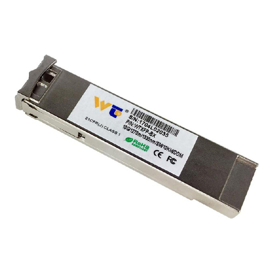 Module quang 10G XFP CWDM là giải pháp kết nối mạng tốc độ cao lý tưởng cho các hệ thống truyền dẫn dữ liệu yêu cầu băng thông lớn và truyền xa. Thiết bị sử dụng công nghệ truyền DML (Direct Modulated Laser), tích hợp chức năng giám sát chẩn đoán kỹ thuật số (DDM), giúp theo dõi trạng thái hoạt động một cách hiệu quả. Với khoảng cách truyền lên tới 10km qua cáp quang đơn mode (SMF) và đầu nối Dual LC, sản phẩm đáp ứng tối đa nhu cầu mở rộng hệ thống mạng doanh nghiệp, trung tâm dữ liệu và hạ tầng viễn thông.