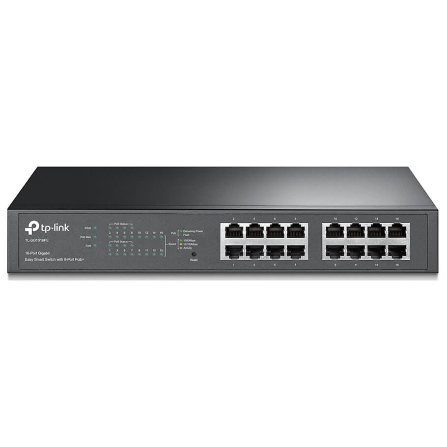 TP-Link TL-SG1016PE là bộ chuyển mạch mạng thông minh 16 cổng Gigabit, tích hợp 8 cổng PoE+ mạnh mẽ, giúp vừa truyền dữ liệu vừa cung cấp nguồn cho các thiết bị như camera CCTV, điện thoại IP hay điểm truy cập không dây qua một cáp duy nhất.