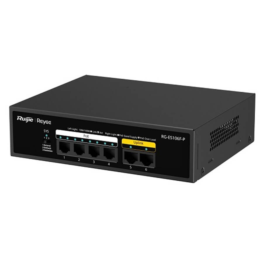 4-Port 10/100Mbps PoE + 2-Port 10/100Mbps Uplink Unmanaged PoE Switch RUIJIE RG-ES106F-P