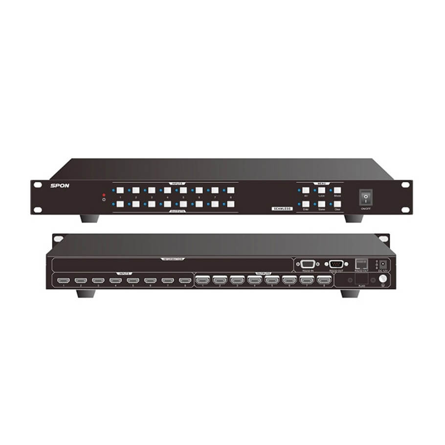 SPON LCS-8016HT là thiết bị chuyển mạch HDMI chuyên dụng, được thiết kế để quản lý và phân phối tín hiệu hình ảnh chất lượng cao trong các hệ thống giám sát và hiển thị đa màn hình. Với khả năng xử lý lên đến 16 kênh đồng thời, sản phẩm mang lại trải nghiệm hình ảnh sắc nét chuẩn 4K, hoạt động ổn định và dễ dàng điều khiển. Đây là lựa chọn phù hợp cho trung tâm điều khiển, phòng an ninh hoặc hệ thống báo động hiện đại.