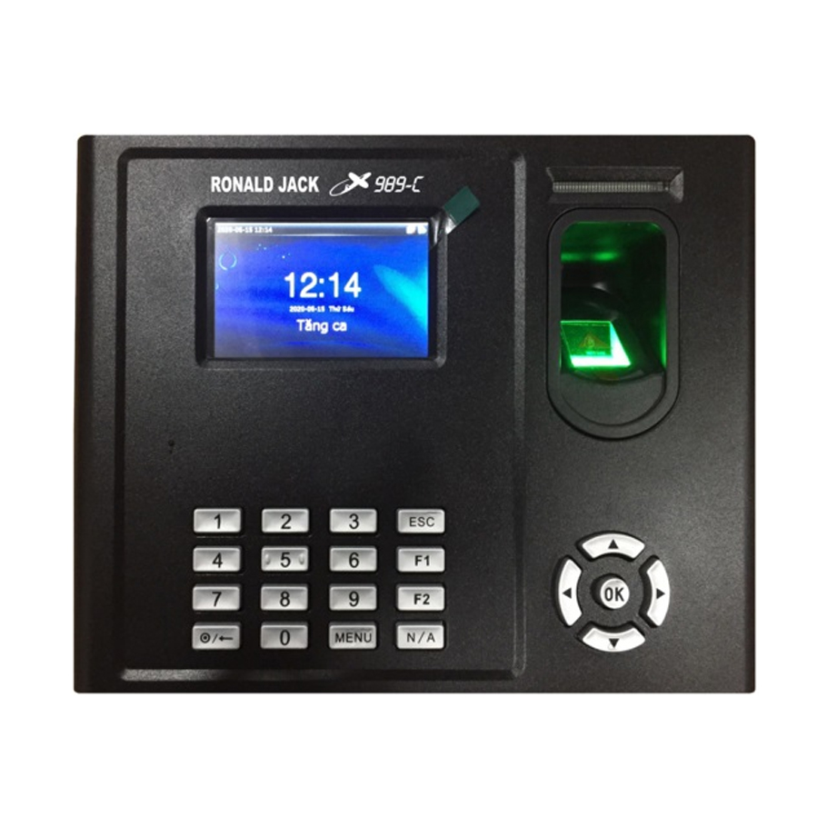Máy chấm công vân tay, thẻ cảm ứng và pin lưu điện RONALD JACK X989-C