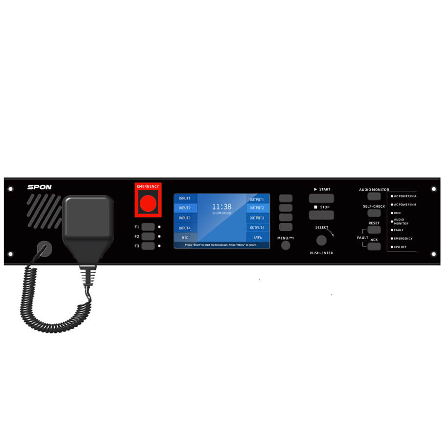 SPON XC-9501H là bộ điều khiển trung tâm của hệ thống âm thanh thông báo IP (IP Audio Matrix Controller), được thiết kế để quản lý, phân phối và giám sát toàn bộ hoạt động phát sóng trong hệ thống âm thanh công cộng. Thiết bị tích hợp màn hình màu LCD 4.3 inch, đèn báo trạng thái và các nút điều khiển vật lý, đồng thời tích hợp sẵn micro khẩn cấp phục vụ phát thông báo tức thời. Với khả năng lập trình linh hoạt, điều khiển nhiều vùng phát độc lập, giám sát lỗi đường truyền, dự phòng kép và công nghệ AI tự điều chỉnh âm lượng, XC-9501H là giải pháp quản lý âm thanh trung tâm lý tưởng cho các tòa nhà thông minh, nhà máy, trường học, trung tâm thương mại, sân bay và bệnh viện.