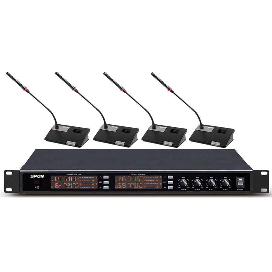 SPON LCS-2338Z-31 là bộ micro hội nghị không dây UHF 4 kênh thuộc dòng LCS-2338Z của SPON, mang lại âm thanh trung thực, kết nối ổn định và thiết kế hiện đại cho các phòng họp chuyên nghiệp. Thiết bị hoạt động trong dải tần UHF 500MHz – 900MHz, sử dụng công nghệ tổng hợp tần số PLL giúp tín hiệu luôn ổn định, giảm nhiễu và cho phạm vi hoạt động rộng.