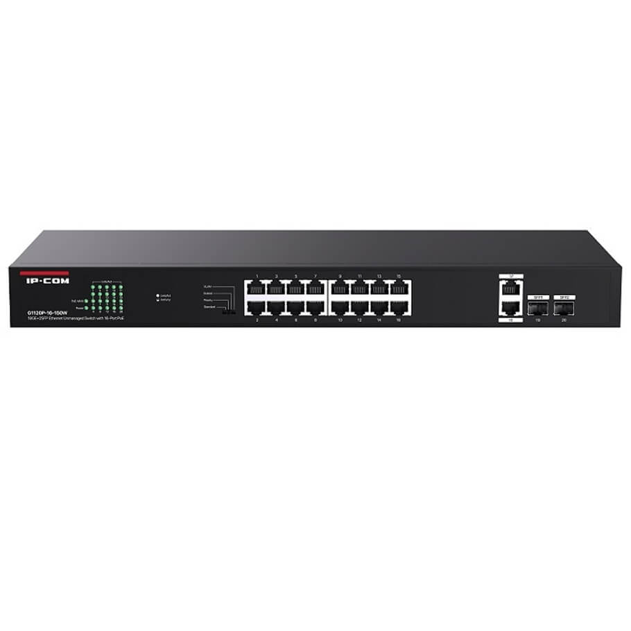 18GE+2SFP with 16-Port PoE Unmanaged Switch IP-COM G1120P-16-150W