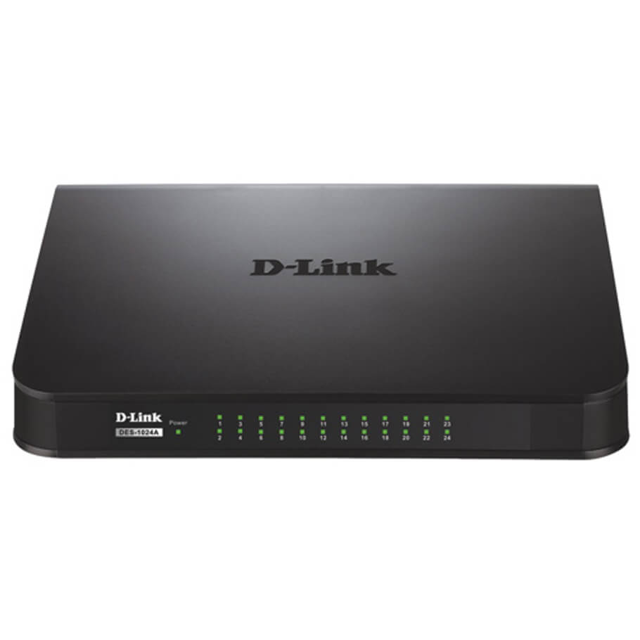 - DES-1024A cung cấp 24 cổng Fast Ethernet (10/100 Mbps) giúp người dùng dễ dàng kết nối nhiều thiết bị như máy tính, máy in, camera IP, NAS hoặc thiết bị lưu trữ mạng. Tốc độ truyền tải nhanh và ổn định giúp chia sẻ dữ liệu, xem video trực tuyến hoặc sao lưu tệp tin diễn ra mượt mà, không bị gián đoạn.