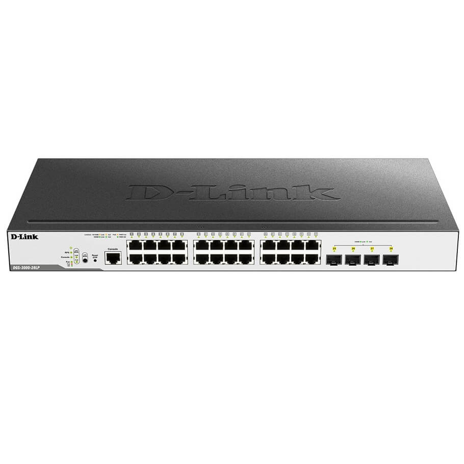 24-port 10/100/1000 Mbps PoE + 4-port SFP L2 Gigabit Managed Switch D-Link DGS-3000-28LP