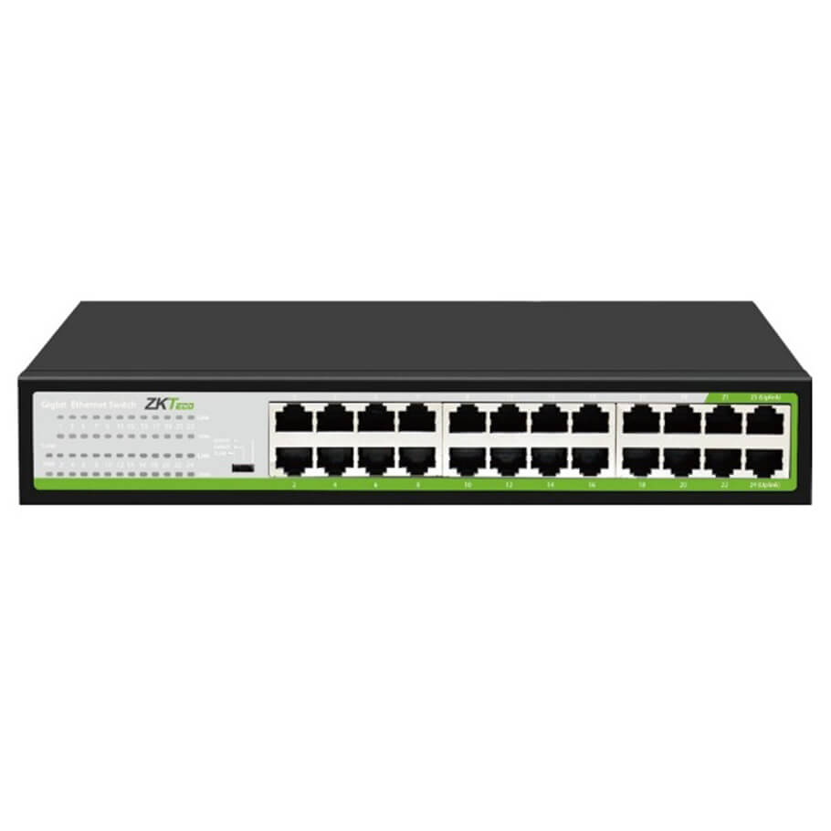 - Trang bị 24 cổng RJ45 10/100/1000 Mbps, switch đảm bảo băng thông rộng và khả năng kết nối ổn định cho nhiều thiết bị cùng lúc. Đây là lựa chọn phù hợp cho văn phòng, hệ thống camera IP, tòa nhà và cửa hàng.