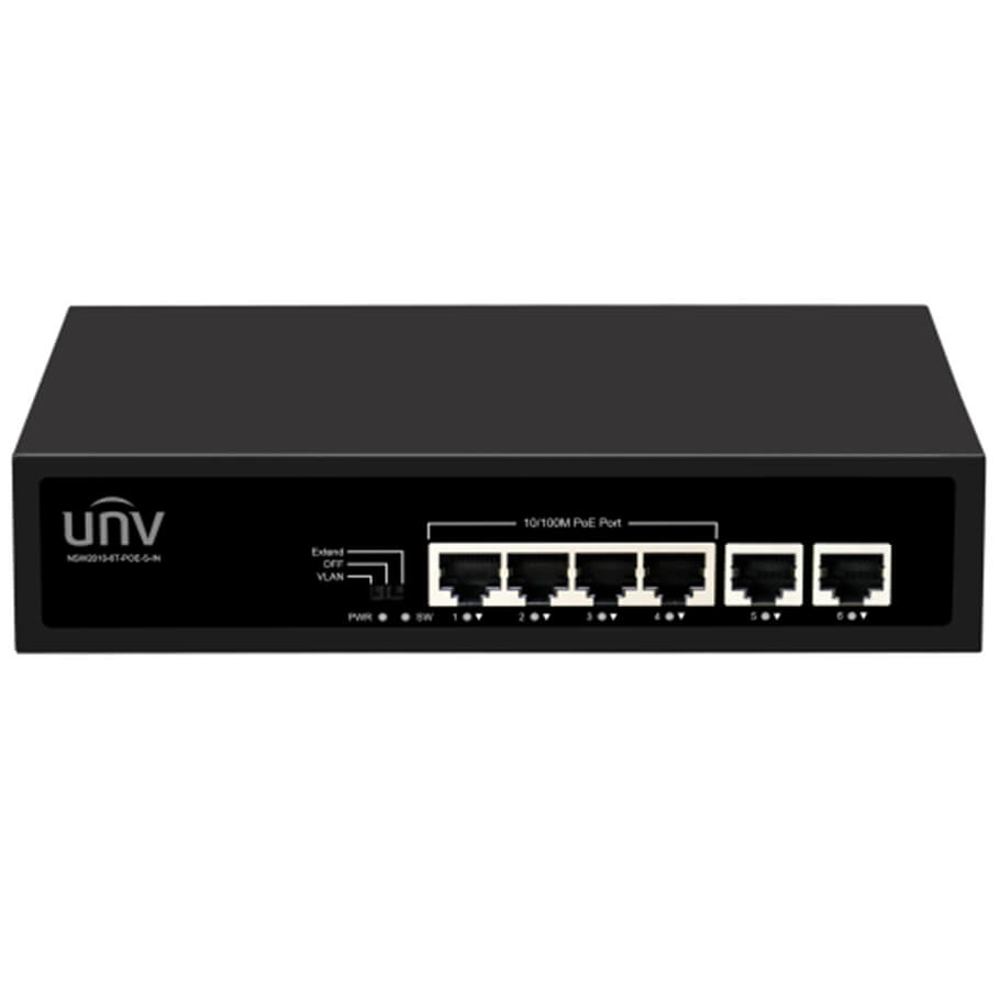 UNV NSW2010-6T-POE-S-IN là switch PoE không quản lý (Unmanaged) thuộc dòng thiết bị mạng của Uniview, được thiết kế để triển khai hệ thống mạng và camera giám sát một cách đơn giản và ổn định. Thiết bị trang bị 6 cổng Ethernet 10/100Mbps, trong đó có 4 cổng hỗ trợ PoE, giúp truyền dữ liệu và cấp nguồn qua cùng một dây mạng. Với thiết kế nhỏ gọn, dễ lắp đặt và vận hành tự động, sản phẩm phù hợp cho văn phòng, cửa hàng và hệ thống giám sát quy mô nhỏ đến trung bình.