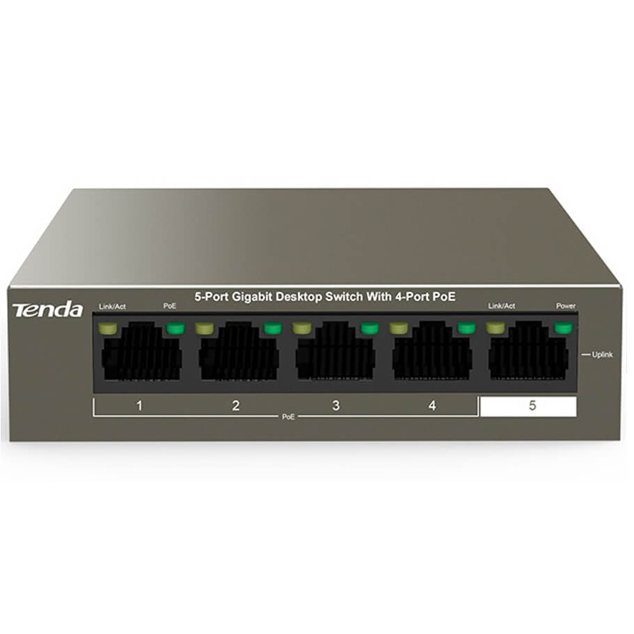- TEG1105P-4-63W là switch PoE của Tenda gồm 5 cổng RJ45 10/100/1000Mbps Base-TX. Các cổng 1-4 tuân theo tiêu chuẩn IEEE 802.3af (công suất PoE tối đa: 15,4W) và chuẩn 802.3at (công suất PoE tối đa: 30W). Switch cung cấp công suất PoE tối đa là 58W và có thể cấp nguồn cũng như trao đổi dữ liệu với các AP, camera IP và điện thoại IP thông qua cáp CAT5. Ngoài ra cũng cung cấp các chế độ quản lý đơn giản như VLAN, giúp giảm chi phí cáp cho các thiết bị IP đầu cuối như AP và camera IP.