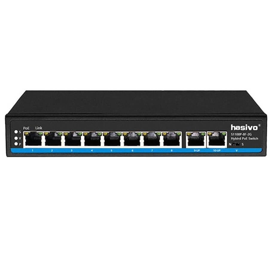 8-Port FE PoE + 2-Port GE Uplink Switch HASIVO S1100P-8F-2G-AI