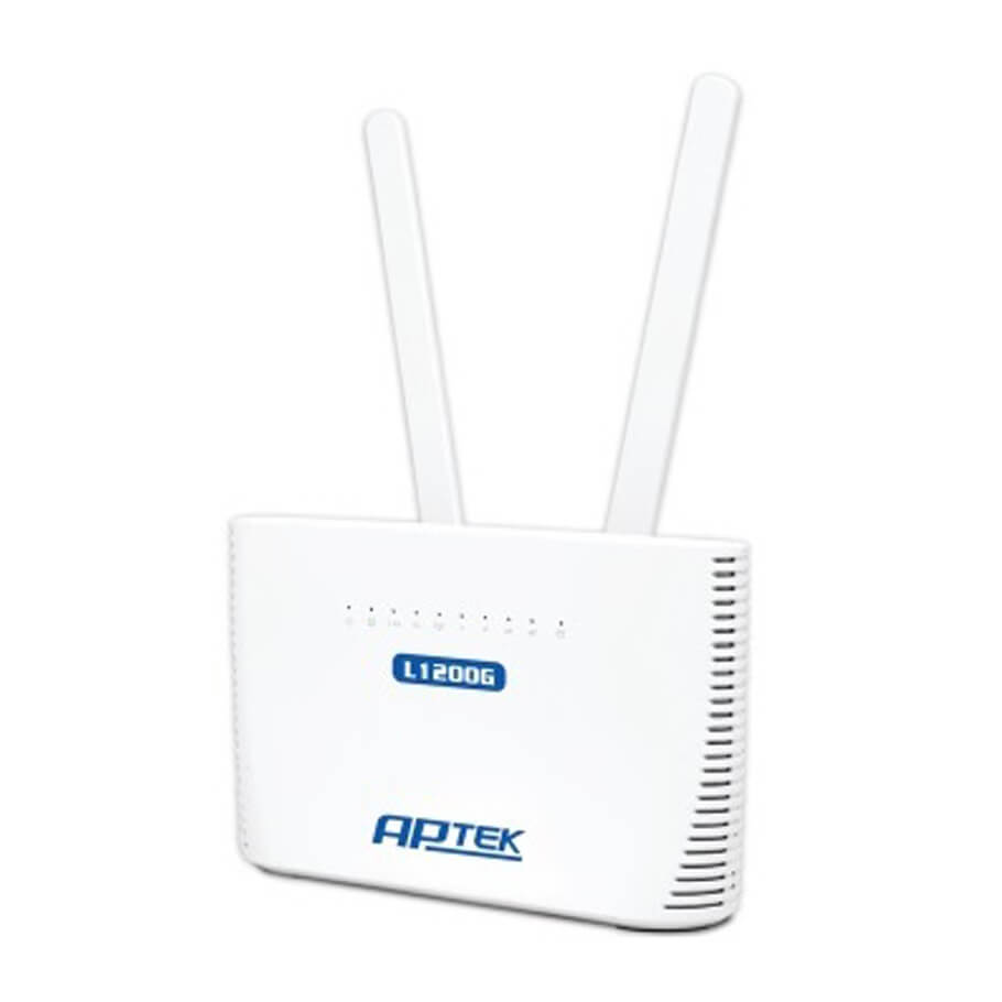 APTEK L1200G là router 4G LTE tích hợp Wi-Fi AC1200, mang đến kết nối Internet nhanh và ổn định cho gia đình và văn phòng nhỏ. Thiết bị hỗ trợ lắp SIM trực tiếp và tự nhận cấu hình nhà mạng, giúp sử dụng dễ dàng mà không cần thiết lập phức tạp. Với Wi-Fi băng tần kép, cổng Gigabit và khả năng gắn ăng-ten ngoài, APTEK L1200G đáp ứng tốt nhu cầu truy cập tốc độ cao ở mọi không gian.
