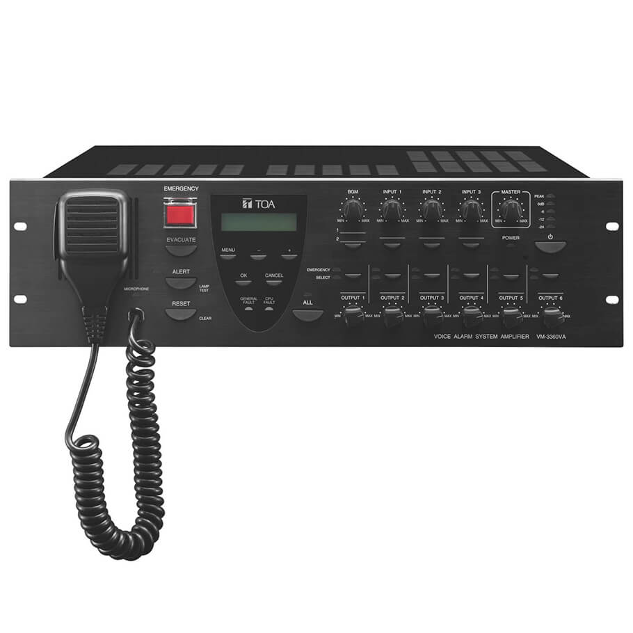 TOA VM-3360VA là một bộ tăng âm “All-in-one” đa chức năng, phù hợp cho các hệ thống âm thanh chuyên nghiệp và an toàn. Thiết bị hỗ trợ 6 vùng loa riêng biệt với công suất tối đa lên đến 360W, được thiết kế dạng 3U để gắn tủ rack tiện lợi. VM-3360VA không chỉ phát nhạc nền và thông báo thông thường mà còn hỗ trợ phát thông báo khẩn cấp tự động theo tiêu chuẩn EN60849, giúp hệ thống của bạn luôn an toàn và hiệu quả.