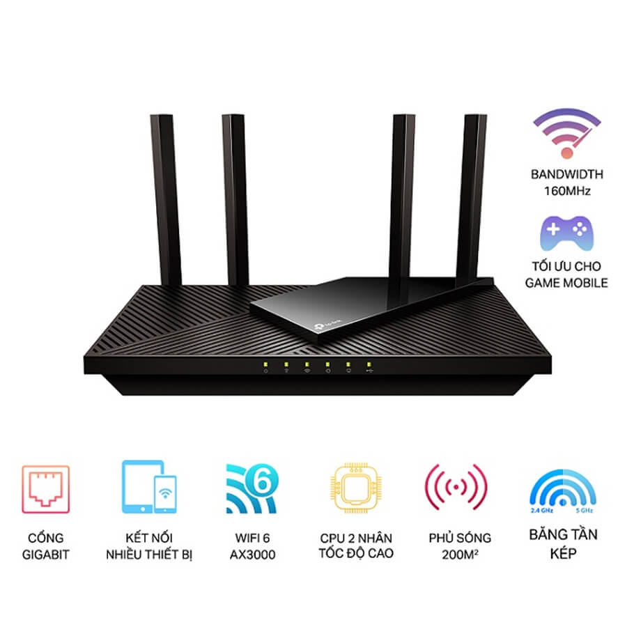 Sản phẩm cho phép kết nối nhiều thiết bị cùng lúc nhờ công nghệ OFDMA và MU-MIMO, đồng thời mở rộng phạm vi phủ sóng với 4 ăng-ten hiệu suất cao và Beamforming, đảm bảo Wi-Fi mạnh mẽ đến mọi góc nhà. Bên cạnh đó, TP-Link HomeShield giúp bảo vệ mạng gia đình khỏi các mối đe dọa mới nhất, trong khi tính năng EasyMesh và tương thích Alexa mang đến sự tiện lợi và linh hoạt tối đa.