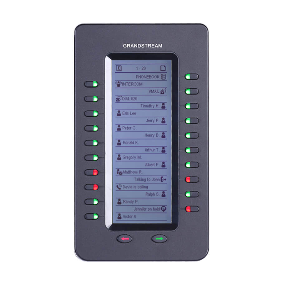 - Module mở rộng Grandstream GXP2200EXT tạo nên sự linh hoạt cho điện thoại IP Grandstream GXP2200. Các mô-đun GXP2200EXT có đồ họa màn hình LCD lớn 128 x 384 và 20 nút có thể lập trình (mỗi với hai màu LED). Ngoài ra, nó cho phép lên đến 40 phần mở rộng mỗi mô-đun bằng cách sử dụng các phím chuyển đổi 2 trang và lên đến 160 nút khi 4 mô-đun mở rộng là daisy được xích lại với nhau. Các mô-đun GXP2200EXT được kết nối, hỗ trợ, và kiểm soát bởi GXP2200, cung cấp các lợi ích của các khóa bổ sung ngay lập tức. Điện thoại đa phương tiện Grandstream GXP2200 là một màn hình cảm ứng điện thoại lõi được tích hợp PoE và Bluetooth, hỗ trợ các hội nghị, skype, Lync, EHS.