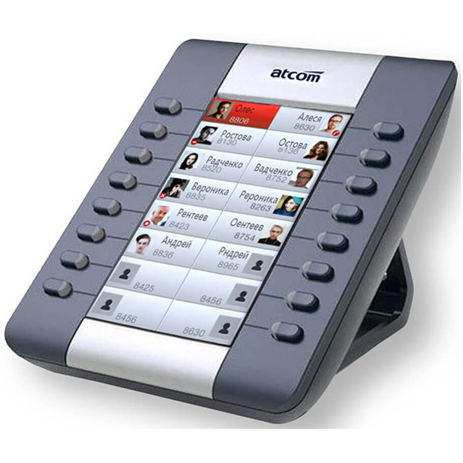 -Bàn phím mở rộng Atcom AET được thiết kế để sử dụng với các điện thoại IP Atcom có tính năng có thể kết nối được với màn hình mở rộng thứ 2, nhằm mang lại tiện ích hiển thị nhiều hơn các thông tin và thêm các phím bấm tắt các chức năng, mang lại tiện ích cho người sử dụng.