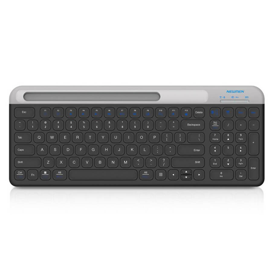 - Bàn phím đa phương tiện không dây, 99 nút siêu tĩnh âm, kết nối bluetooth 5.0 và 2.4Ghz. Thiết kế mỏng gọn, chắc chắn. Kết nối cùng lúc được cho 4 thiết bị (3 Bluetooth + 1 2.4Ghz) chuyển đổi sử dụng nhanh, dễ dàng bằng tổ hợp phím. Tích hợp pin sạc sử dụng được 250h liên tục, cổng sạc Type-C. Có đẩy đủ giao diện sử dụng đồng bộ cho Mac, iOS, Android, Windows. Có khe đỡ điện thoại và Tablet dễ dàng xem hoặc gõ. Thiết kế với độ bền cao, gấp 3 lần các bàn phím thông thường.