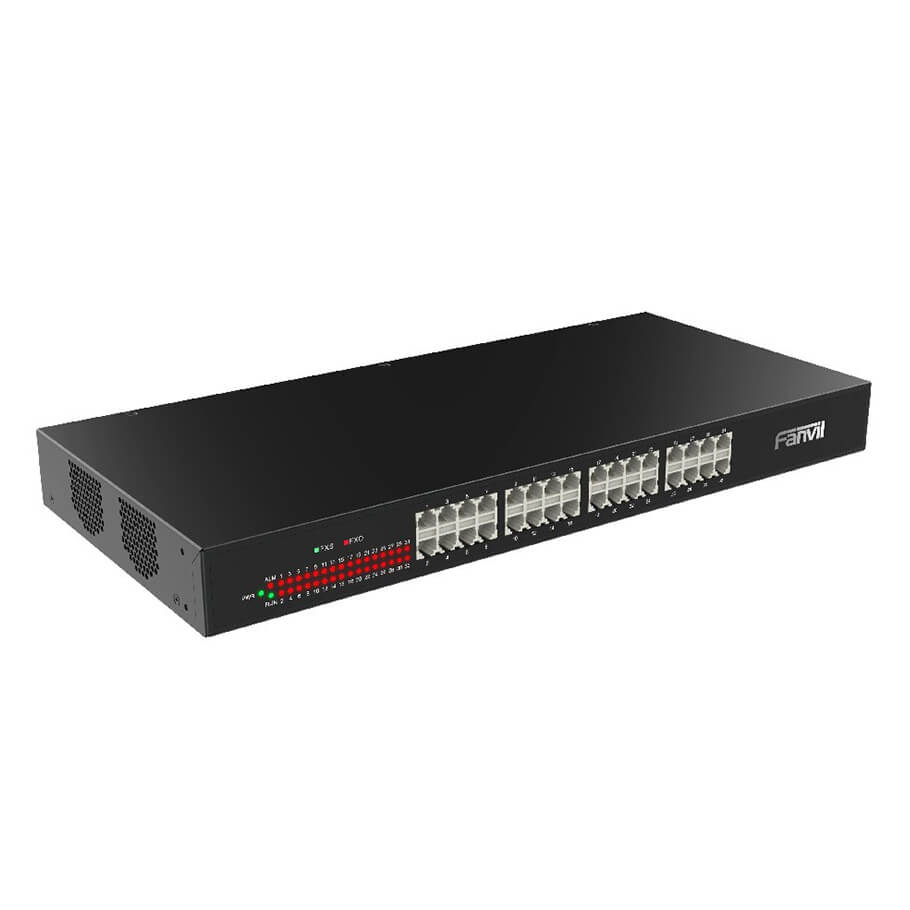 - Trang bị 32 cổng FXO, cho phép kết nối số lượng lớn đường điện thoại analog PSTN vào hệ thống tổng đài IP.