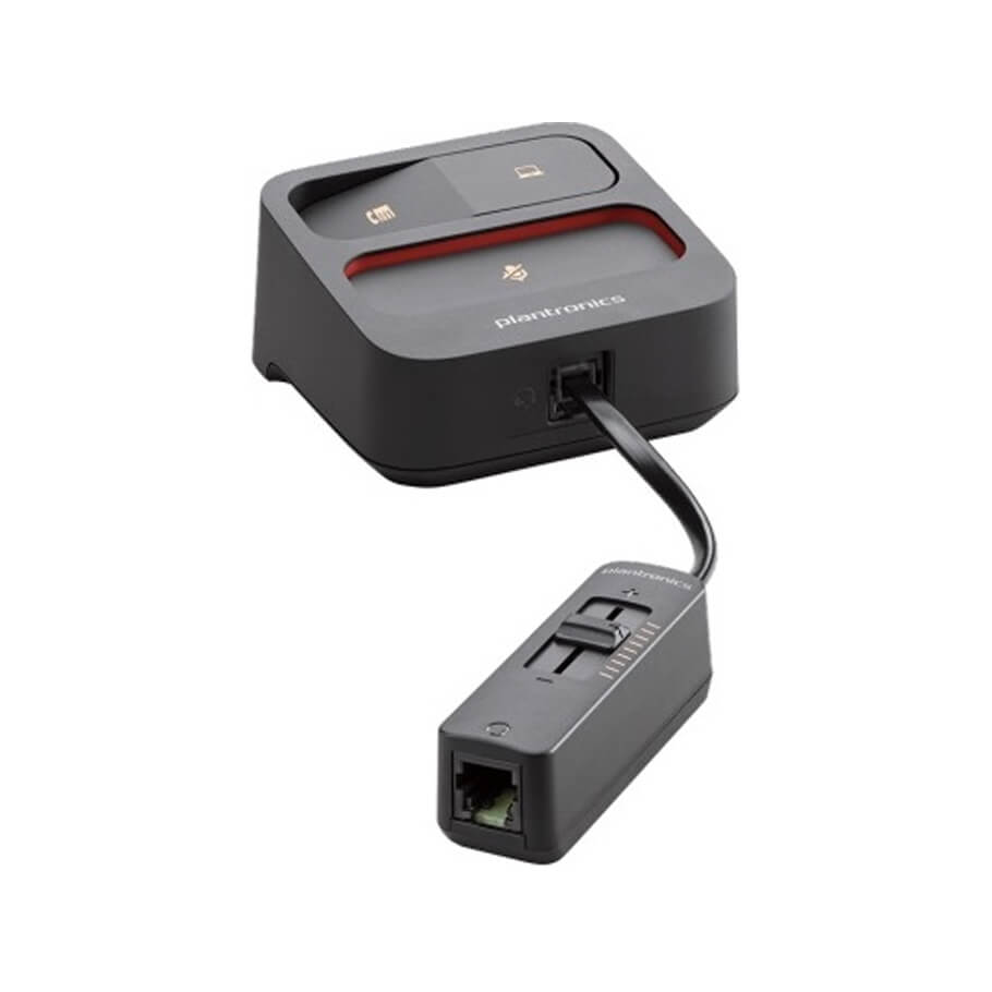 | Connects to | PC + desk phones + Plantronics QD headsets |