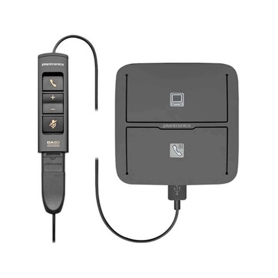 | Connects to | Traditional desk phones and PC softphones; Plantronics Quick Disconnect (QD) headsets (not included) |