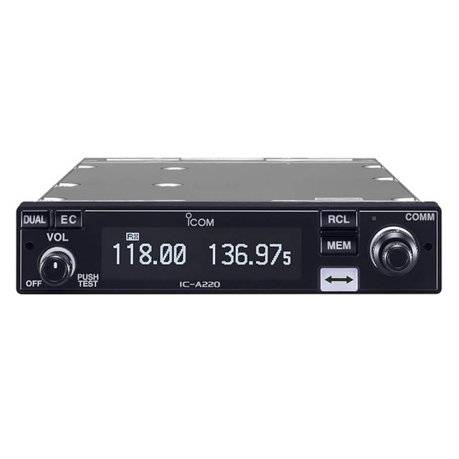 - Bộ đàm hàng không ICOM IC-A220 có một màn hình cơ cấu đi-ốt phát sáng (OLED) với góc nhìn 170 độ rất rộng. Các ký tự màu trắng trên nền màu đen hiển thị rõ ràng dễ đọc các thông tin vận hành. Với phím có đèn chiếu nền màu trắng, màn hình OLED màu trắng phù hợp với bảng mặt dụng cụ hiện đại. Hơn nữa, chức năng tự động làm tối điều chỉnh tối ưu độ sáng màn hình.