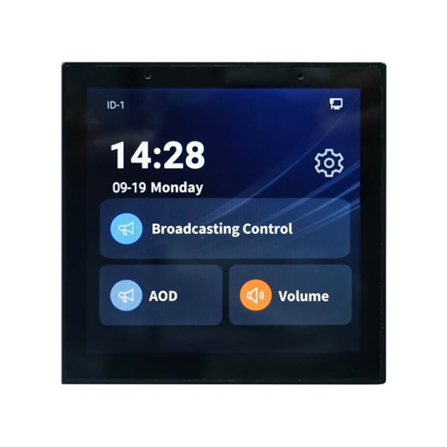 - Cấu trúc nhỏ gọn và thẩm mỹ, được thiết kế để lắp đặt trong hộp âm tường loại 86. Trang bị màn hình cảm ứng điện dung 4 inch với độ phân giải 480*480.
