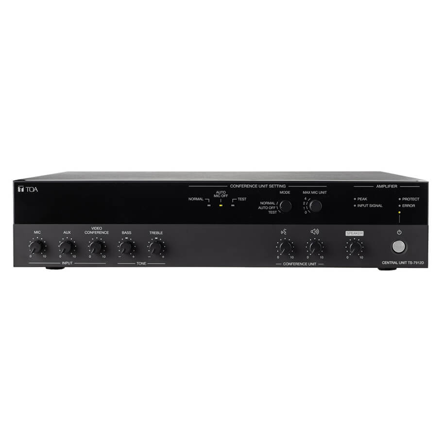 TOA TS-7912D-AS là bộ trung tâm của hệ thống hội thảo dòng TS-790, giúp kết nối và quản lý các micro hội thảo một cách chuyên nghiệp. Thiết bị tích hợp sẵn tăng âm công suất 120W, hỗ trợ kết nối loa ngoài và cấp nguồn cho các thiết bị hội thảo khác. TS-7912D-AS còn hỗ trợ kết nối họp trực tuyến qua USB hoặc giắc RCA, đồng thời có cổng để kết nối Equalizer hoặc các thiết bị xử lý tín hiệu khác. Thiết bị có thể gắn tủ rack tiêu chuẩn EIA (2U) giúp tiết kiệm không gian và dễ bố trí trong phòng họp.