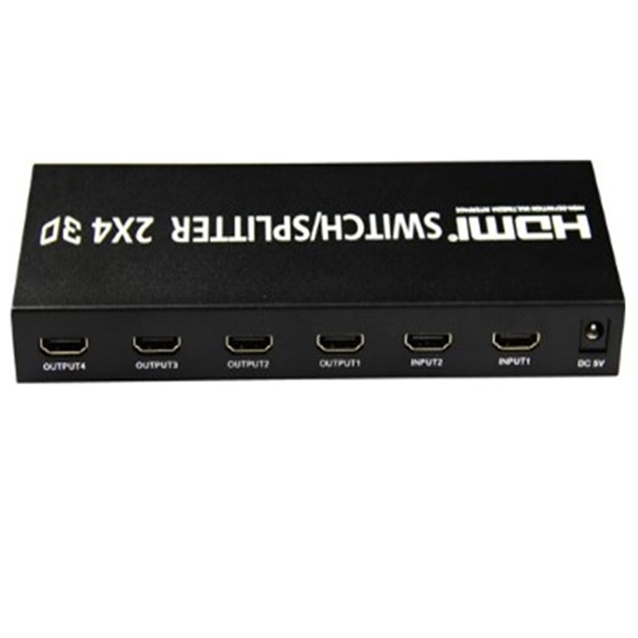 - Bộ vừa chia vừa chuyển HDMI 2 vào 4 ra hỗ trợ tín hiệu vào 2 cổng HDMI và tín hiệu ra 4 cổng HDMI (4 tivi).