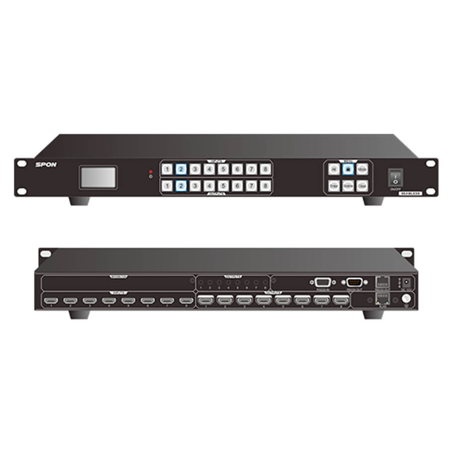 SPON LCS-8008HTP là bộ chuyển mạch ma trận HDMI 8x8 chuyên nghiệp, cho phép 8 nguồn tín hiệu HDMI đầu vào được phân phối và hiển thị linh hoạt đến 8 màn hình đầu ra khác nhau. Thiết bị hỗ trợ độ phân giải lên đến 4K@30Hz, băng thông 24Gbps và chuẩn HDMI 1.4, mang đến hình ảnh sắc nét, màu sắc trung thực và độ ổn định cao.