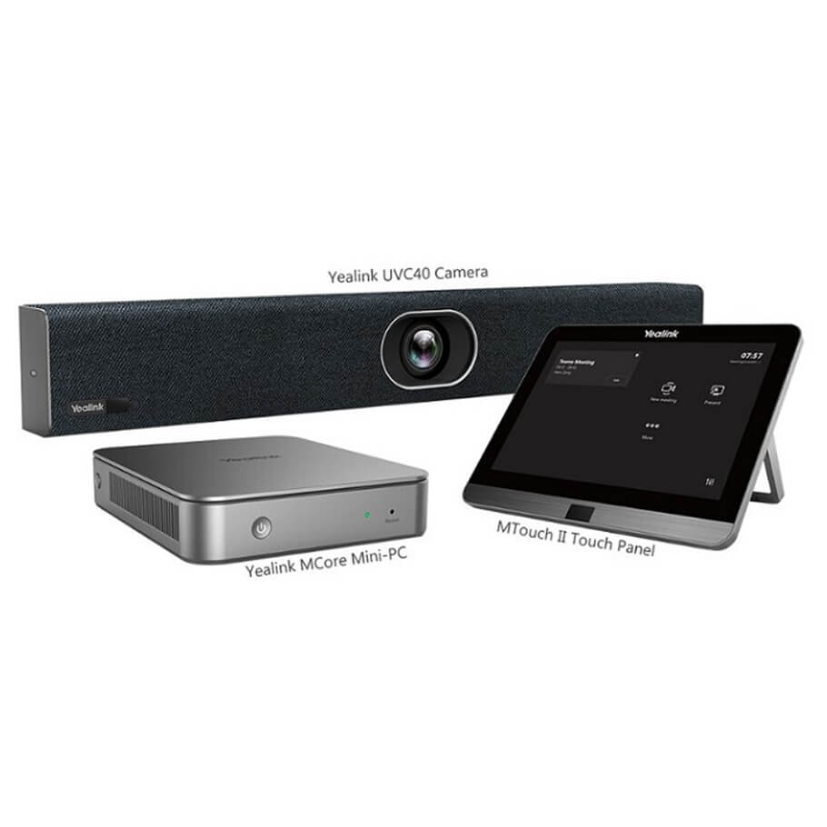 - Bộ thiết bị hội nghị Yealink MVC400-C4-000 là bộ thiết bị bao gồm camera Yealink UVC40, máy tính mini MTouch II và MCore. Yealink UVC40 là thanh video USB tất cả trong một mang đến trải nghiệm video và giọng nói với camera, mảng micrô và loa tích hợp hỗ trợ AI. Với máy tính mini MTouch II và MCore, giải pháp video Yealink MVC400 dành cho phòng hội nghị Teams mang đến hệ thống MTR chuyên dụng đáp ứng yêu cầu của phòng họp tập trung và phòng họp nhỏ.
