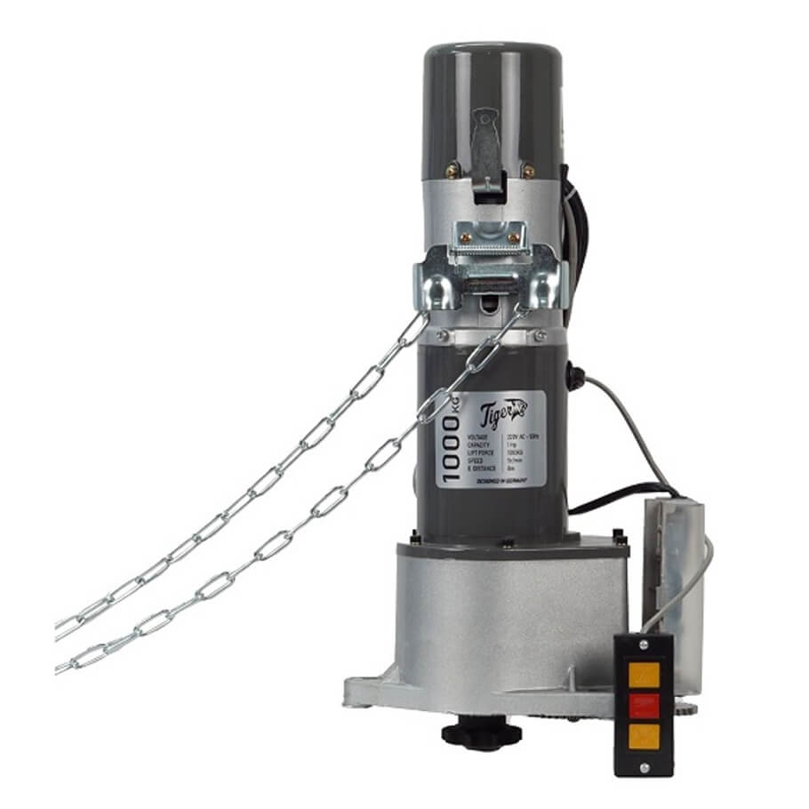 - Motor - Bộ tời cửa cuốn Tiger-1000 được thiết kế và sản xuất với công nghệ từ Đức với động cơ cảm biến điện từ 220 Vac-50Hz hiệu suất cao với sức nâng tới 1000kg.