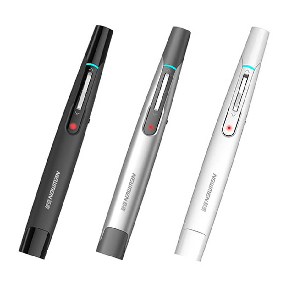 - Bút trình chiếu Newmen P012 cung cấp đến bạn quyền điều khiển mạnh mẽ cho bài thuyết trình, ngoài ra thiết bị được đánh giá cao với sự đa dạng màu sắc lựa chọn mang đến cho người dùng khả năng tự tin hơn khi thuyết trình.
