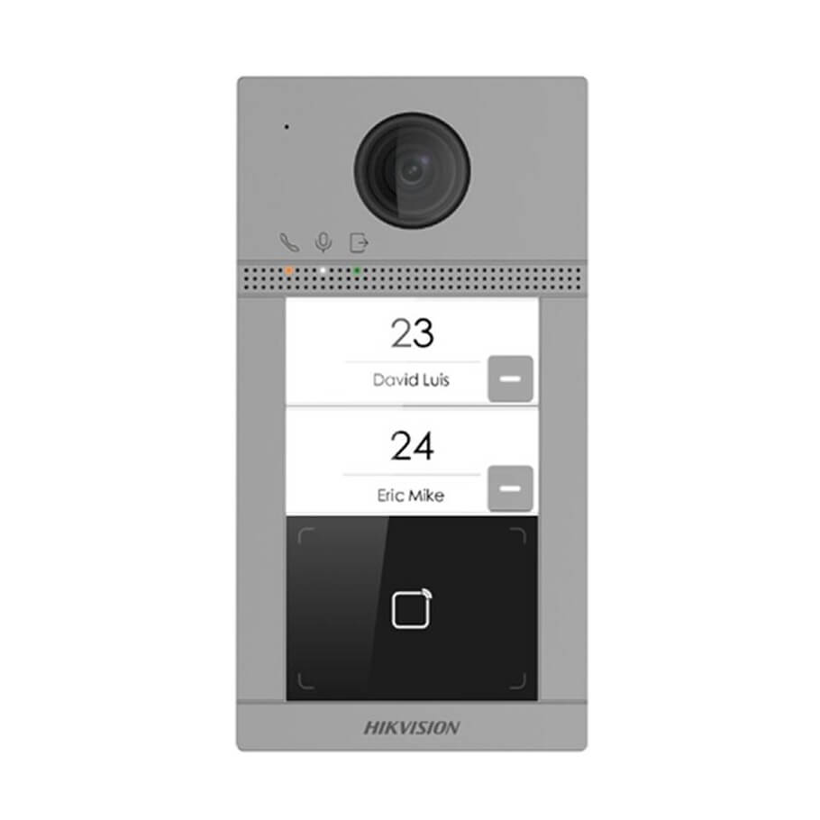 - HIKVISION DS-KV8213-WME1(C) là camera chuông cửa IP cho biệt thự, được thiết kế bằng kim loại, hỗ trợ nhiều nút để tùy chỉnh gọi. Người dùng có thể xem, trò chuyện và cấp quyền cho khách qua điện thoại di động từ bất kỳ đâu. Thiết bị được cấp nguồn bằng PoE tiêu chuẩn, không cần đấu dây nguồn bổ sung, dễ dàng lắp đặt và triển khai. Với mức độ bảo vệ cao, DS-KV8213-WME1(C) phù hợp cho biệt thự, nhà riêng, v.v.