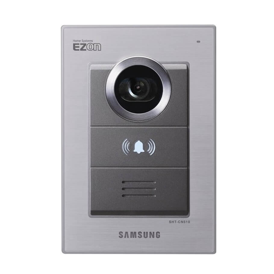 SAMSUNG SHT-CN512/EN là camera chuông cửa màu được thiết kế dành riêng cho hệ thống liên lạc nội bộ Samsung. Sản phẩm mang đến hình ảnh rõ ràng, góc nhìn rộng, giúp người dùng dễ dàng quan sát khách đến trước cửa. Thiết kế mỏng gọn, chắc chắn với vỏ hợp kim bền bỉ, phù hợp lắp đặt cho nhiều không gian khác nhau. Camera hỗ trợ cả lắp âm tường và lắp nổi, thuận tiện khi thi công. Thiết bị hoạt động ổn định, sử dụng nguồn cấp trực tiếp từ màn hình. Đây là giải pháp an ninh cơ bản nhưng hiệu quả cho căn hộ và nhà ở.
