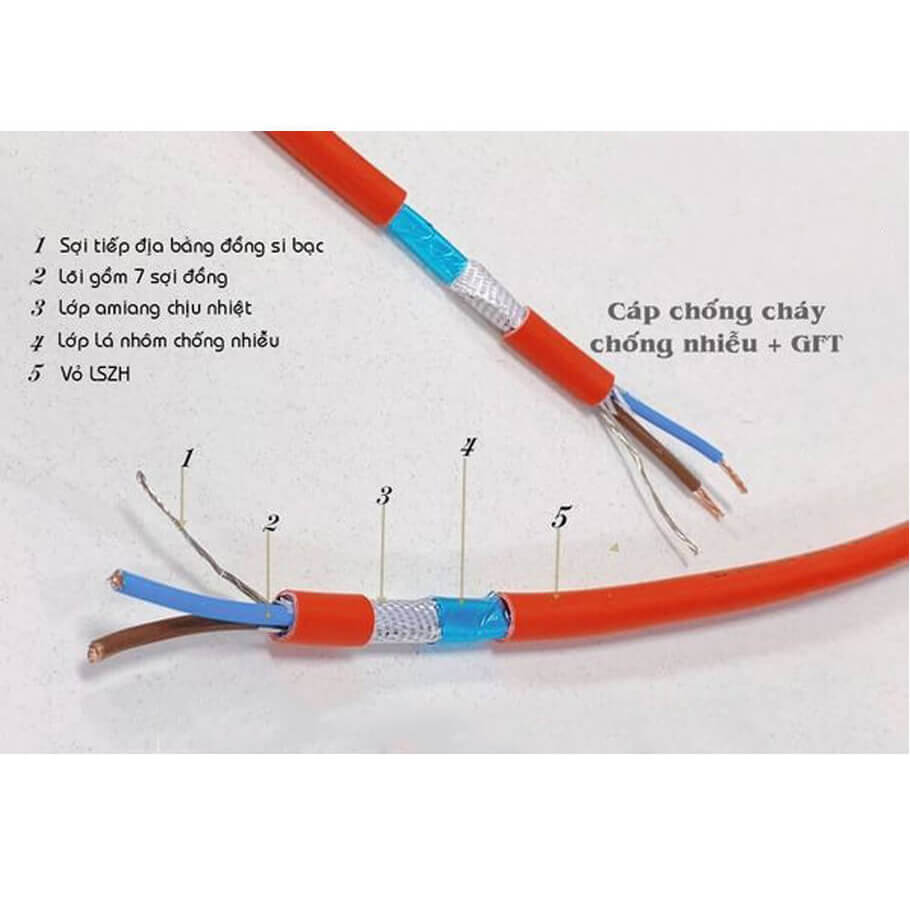 - Tăng cường khả năng chịu lửa: Lớp GFT (Glass Fibre Tape) giúp cáp duy trì khả năng truyền dẫn lâu hơn trong hỏa hoạn.