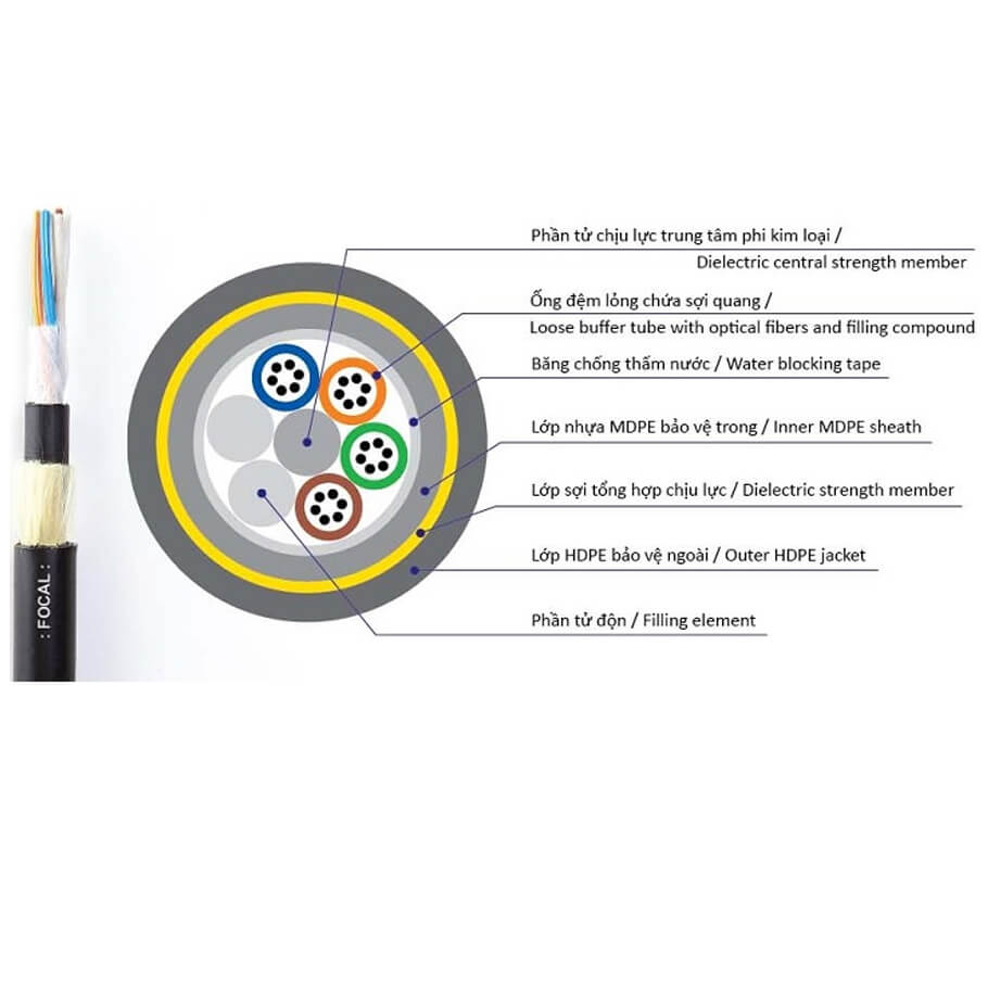 Cáp quang tự treo phi kim loại 12FO FOCAL ADSS12-200
