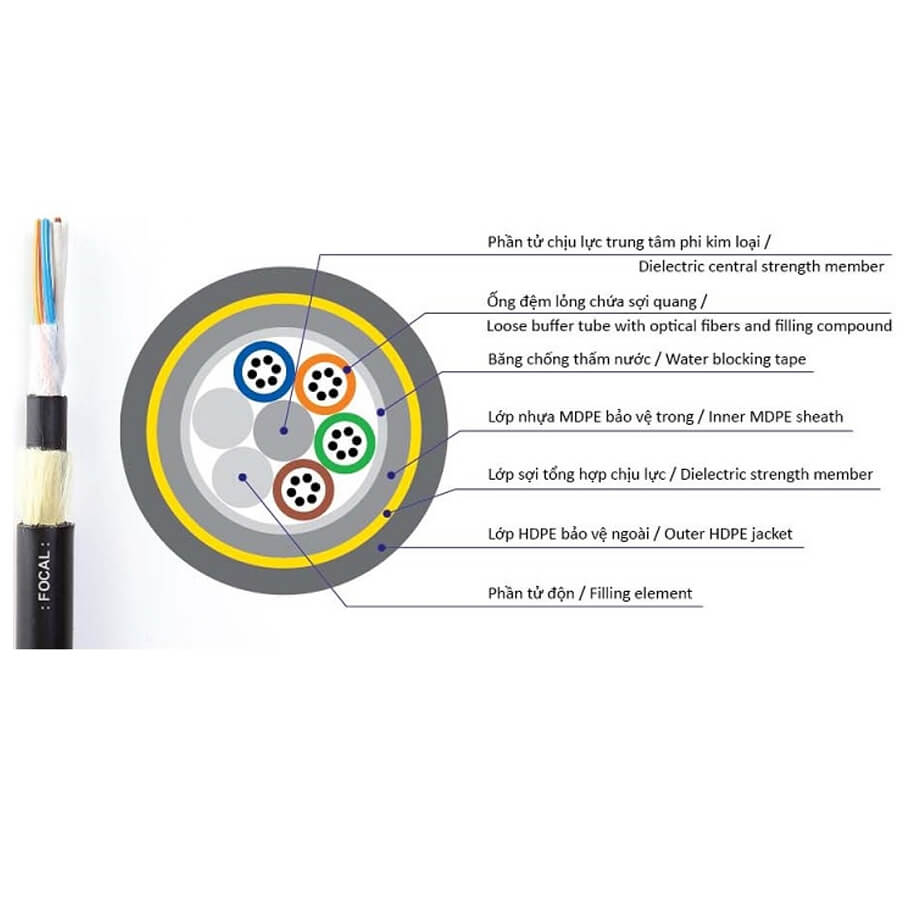 Cáp quang tự treo phi kim loại 24FO FOCAL ADSS24-300