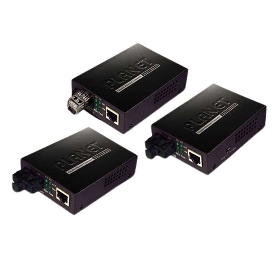 - Nhằm tạo sự linh hoạt cho mọi môi trường truyền 10/100/1000Mbps Ethernet trên cổng RJ-45 và cáp quang Gigabit ổn định hiệu suất cao, bộ chuyển đổi quang điện PLANET giới thiệu dòng chuyển đổi môi trường truyền Media Converter GT-802 chuyển đổi giữa môi trường 10/100/1000Bast-T và 1000Base-SX. Khi đó cần có đầu nối SC với chế độ đa mode. Tín hiệu Ethernet cho phép 3 kiểu của phân mạng kết nối dễ dàng, hiệu quả và chi phí thấp.