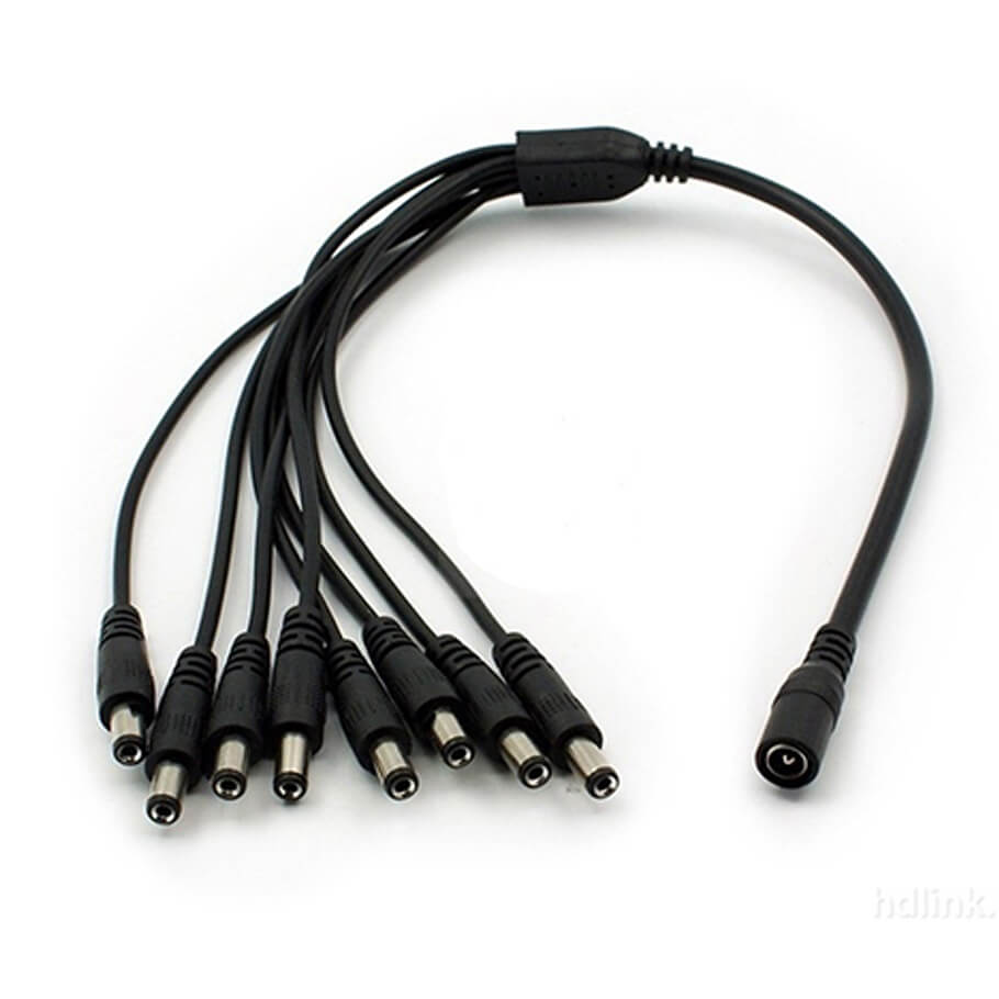 - Dây nối nguồn camera 1 vào 8 ra với jack nguồn loại 5.5x2.5mm.