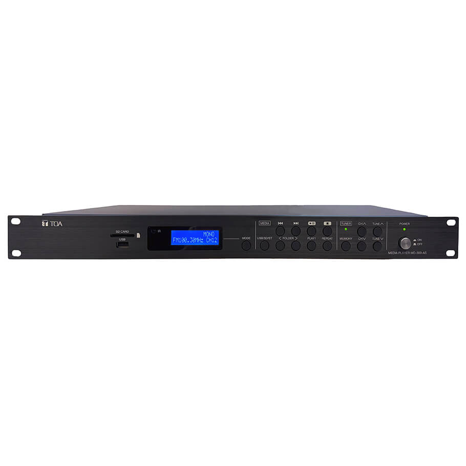 TOA MD-300-AS là thiết bị đầu phát nhạc nền tích hợp thu sóng FM, lý tưởng cho các hệ thống âm thanh thương mại hoặc công cộng. Thiết bị cho phép phát nhạc từ USB, thẻ nhớ SD hoặc qua kết nối Bluetooth, mang đến sự tiện lợi và linh hoạt trong việc điều chỉnh âm nhạc. Với khả năng lưu trữ 30 kênh FM, màn hình hiển thị rõ ràng và kích thước 1U chuẩn EIA, MD-300-AS dễ dàng lắp đặt trong tủ rack, đồng thời đảm bảo hiệu suất âm thanh ổn định và chuyên nghiệp.