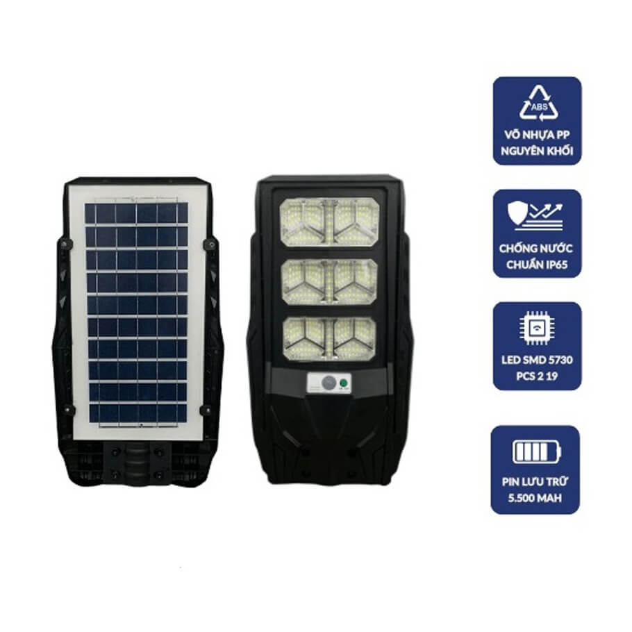 - Với công suất 300W, cho khả năng cung cấp ánh sáng mạnh mẽ và chiếu sáng rộng. Phục vụ tốt cho các khu vực đường phố, sân vườn hay khu công nghiệp. Đèn đường led năng lượng mặt trời JD3618 sử dụng Chip SMD 5730 với tổng cộng 219 bóng LED. Với dải màu 6500K và lumen lớn, đèn đường 300w này tạo ra độ sáng cao hơn 25% so với các dòng đèn led chiếu sáng đường phố trong tầm giá.