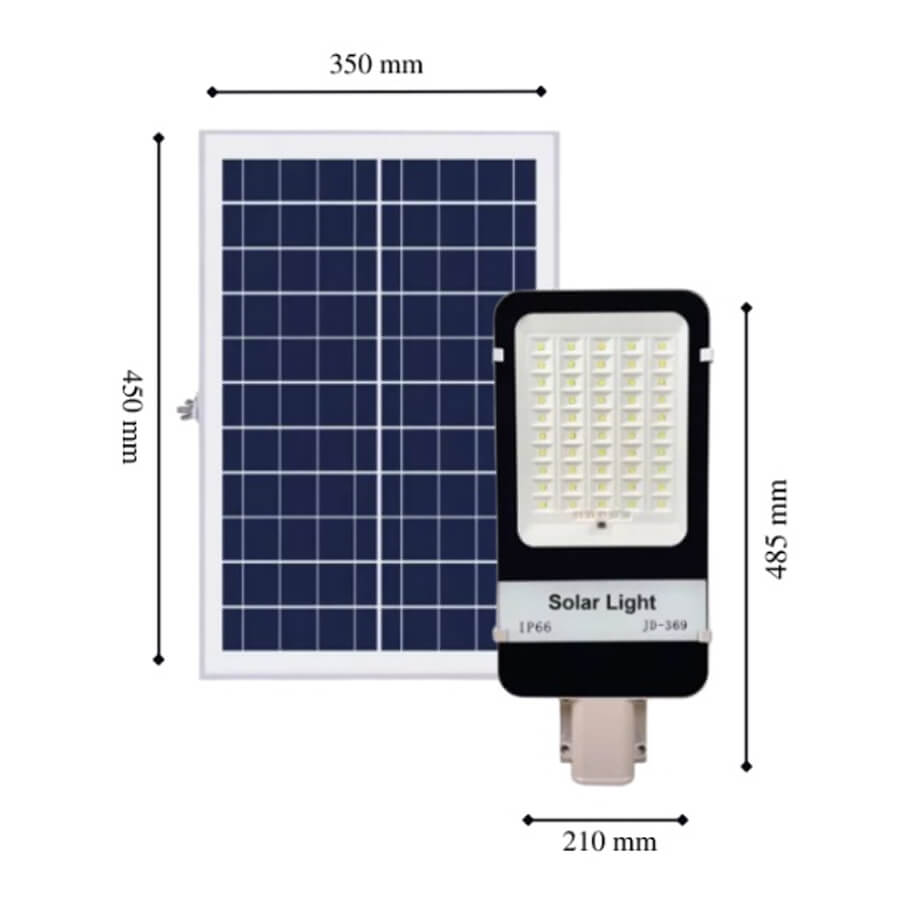 - Đèn đường Led năng lượng mặt trời 300W JD-369 JINDIAN sử dụng 50 chip Led SMD 2835, có thể hoạt động chiếu sáng liên tục mỗi đêm từ 10-12 tiếng khi được sạc đầy pin, dung lượng pin 3.2V/25AH đảm bảo cung cấp đủ ánh sáng cho người dùng trong khu vực 300m2 trở lại.