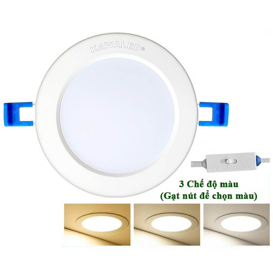 Đèn Led âm trần đúc nguyên khối 7W có nút gạt đổi màu KAWALED DL90-7W-3CM