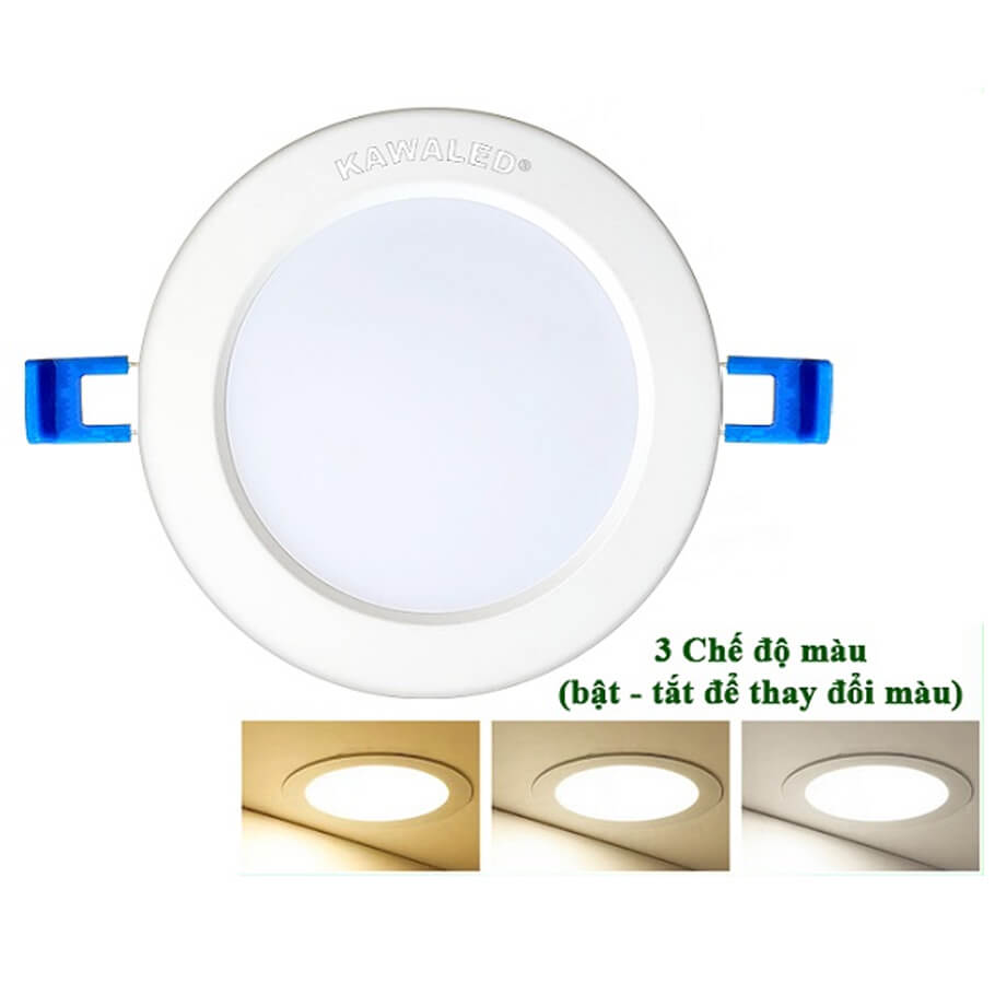 Đèn Led âm trần đúc nguyên khối 7W đổi 3 chế độ màu KAWALED DL90-7W-3M