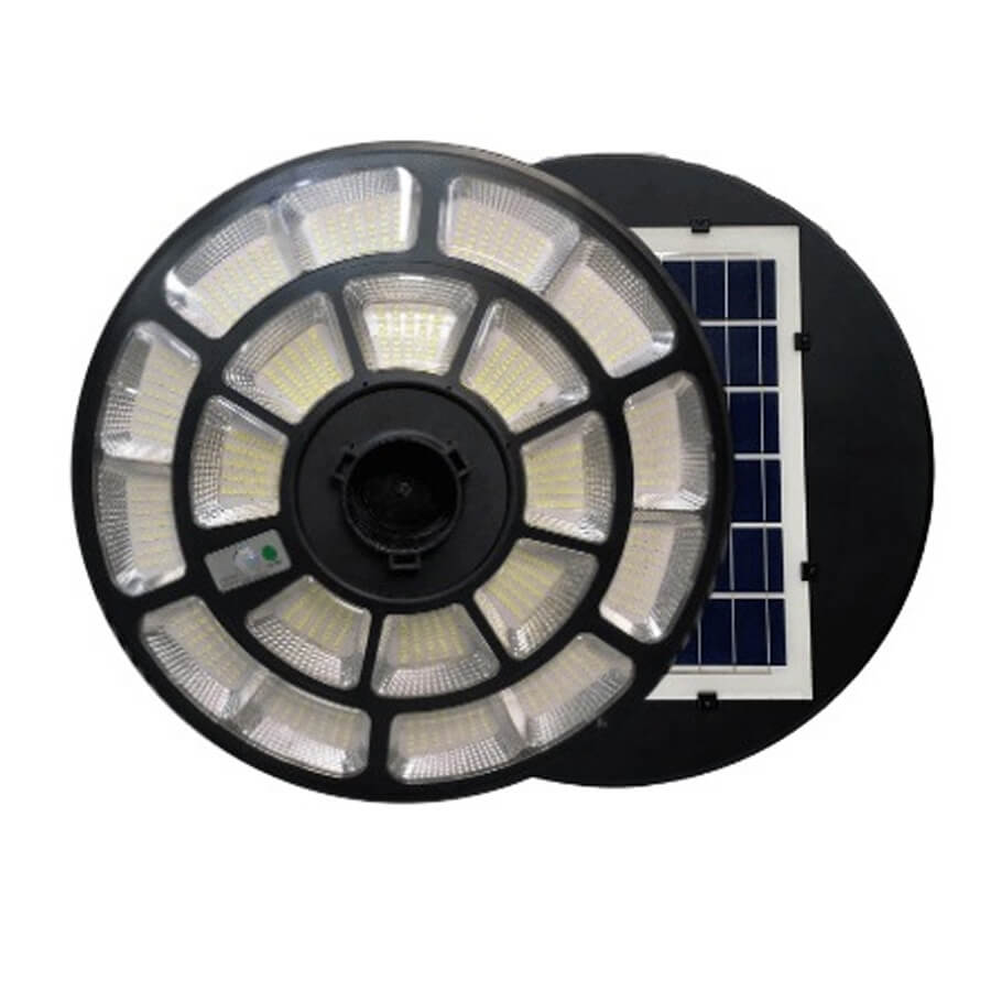 - Đèn sân vườn năng lượng mặt trời 1000W UFO1000 có thiết kế đẹp mắt, tính thẩm mỹ cao, ngoài sử dụng để chiếu sáng, thì còn được dùng để trang trí cho sân vườn thêm đẹp mắt thu hút. Đây là thiết bị chiếu sáng thông minh, bật tắt thông qua cảm biến ánh sáng, chuyển động, có thể điều khiển từ xa thông qua remote đảm bảo an toàn cho người dùng vào những ngày mưa gió, rất là tiện lợi.