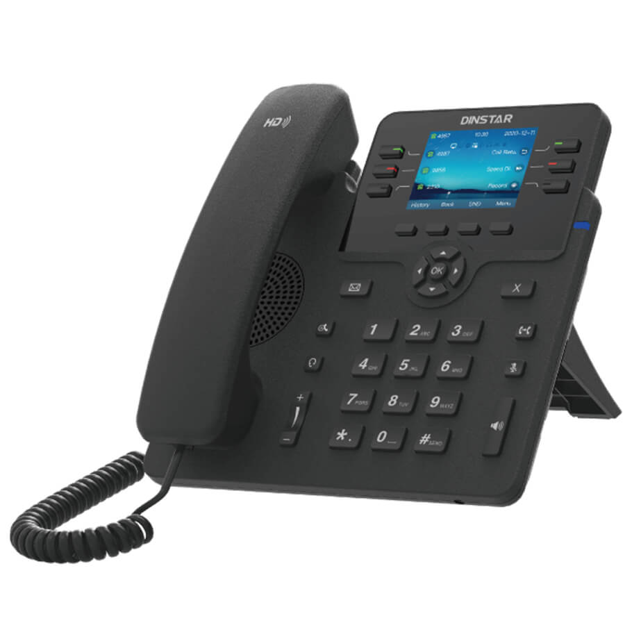 Dinstar C63G là dòng điện thoại IP doanh nghiệp nổi bật trong phân khúc phổ thông mang đến sự cân bằng giữa hiệu năng, thiết kế và trải nghiệm người dùng. Với màn hình màu 2.8 inch, chất lượng âm thanh HD, hỗ trợ 6 tài khoản SIP và cổng mạng Gigabit kép, thiết bị đáp ứng tốt nhu cầu liên lạc của các văn phòng, trung tâm chăm sóc khách hàng hay doanh nghiệp đang triển khai hệ thống VoIP chuyên nghiệp.