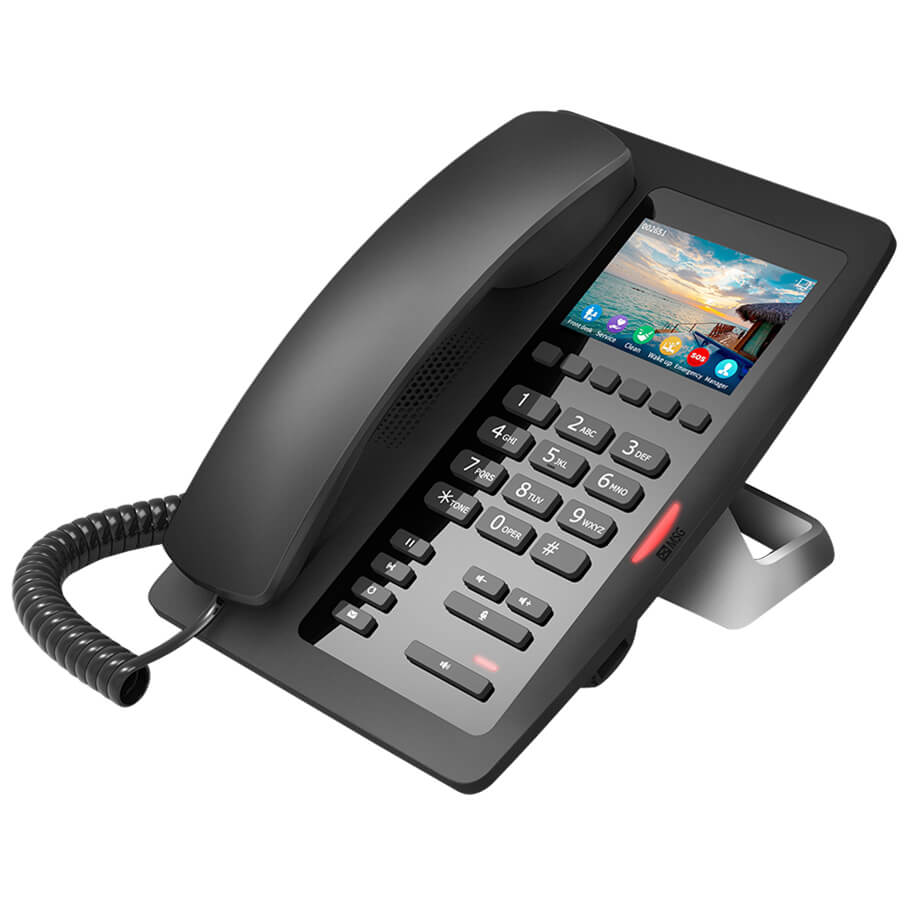 - Hỗ trợ 6 phím mềm có thể lập trình tùy biến cho đường dây nóng dịch vụ (dọn phòng, đặt vé, tổng đài, đồ ăn và thức uống, v.v...) và các dịch vụ hoàn hảo của khách sạn (gọi buổi sáng, tin nhắn thoại, v.v...).