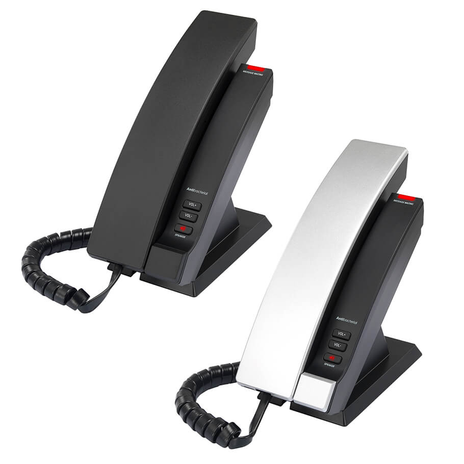 - Các nút chức năng: 4 nút speed dial/guest service trên đế, 2 nút speed dial trên tay cầm, 1 nút Mute.