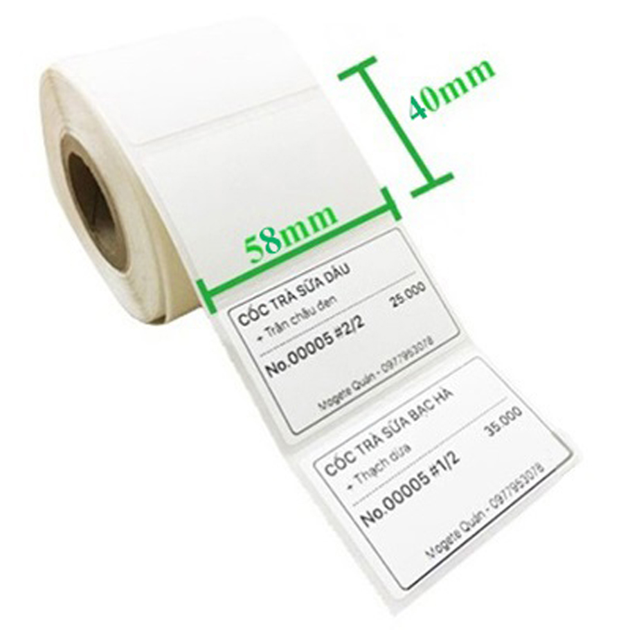 Giấy Decal nhiệt 58mm x 40mm (30 mét) 1 tem/ hàng