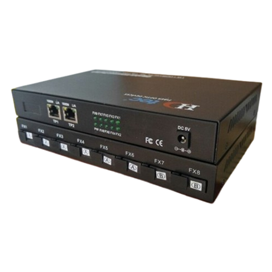 HDTEC Ethernet Converter 8 cổng quang 100M 2 cổng RJ45 1000M