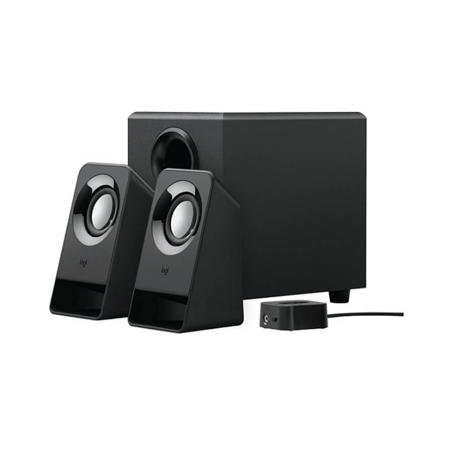 - Hệ thống loa máy tính 2.1 Logitech Z213 đem đến âm thanh rõ ràng và âm trầm tăng cường thông qua giắc kết nối 3.5 mm. Dễ dàng tiếp cận nguồn, âm lượng và giắc tai nghe bằng bộ điều khiển có dây. Tận hưởng đầy đủ trải nghiệm âm thanh trong hình dáng nhỏ gọn.